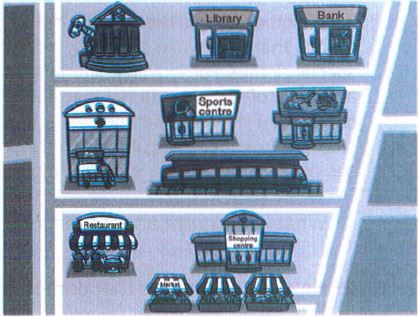 3. The sports centre is between the aquarium and the hospital.