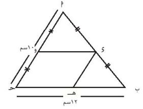 ٢) في الشكل المقابل أ ب جـ مثلث فيه ء، هـ، و منتصفات ، ، = ١٠ سم