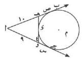 ٥) قطر في الدائرة م، أ ب = ١٠ سم، جـ الدائرة م، رسم مماس للدائرة عند جـ فقطع المماسين المرسومين لهنا عند أ، ب في س، ص على الترتيب حيث س ص = ١٣ سم