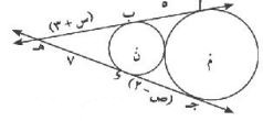 ٤) م، ن دائرتان متماستان من الخارج في ء، مماس مشترك لهما عند أ، ب، مماس مشترك للدائرتين عند ء. حيث = {جـ}.