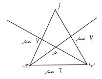 ٢) [أ] باستخدام المسطرة والفرجار ارسم المثلث أ ب جـ الذي فيه أ ب = = أ جـ = ٧ سم. ب جـ = ٦ سم. نصف كلاً من الزاويتين ب، جـ بمنصفين يتقاطعان في م (لا تمح الأقواس.) هل م ب = م جـ؟